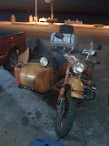 the dog - and yes, the dog rides the side car and his wife rides behind him! Forgot to take a picture of them and the dog…